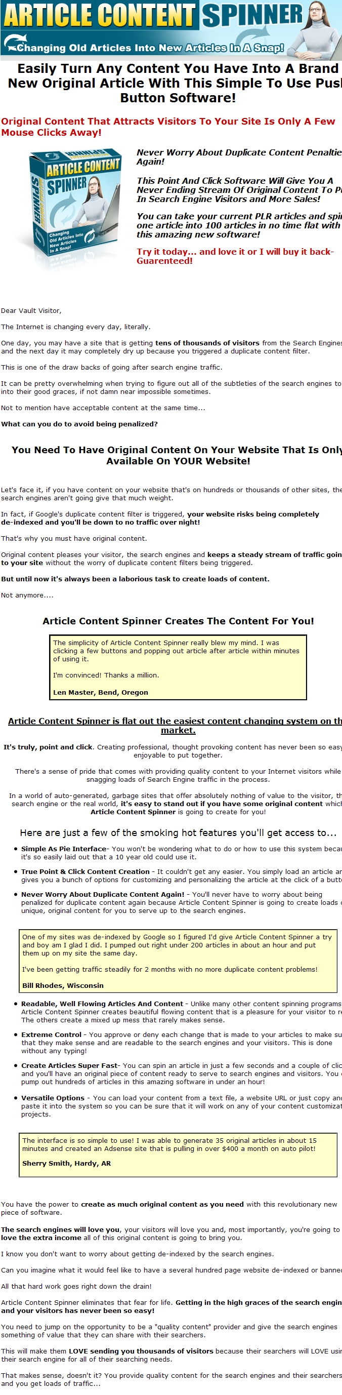 Easily Turn Any Content You Have Into A Brand New Original Article With This Simple To Use Push Button Software!